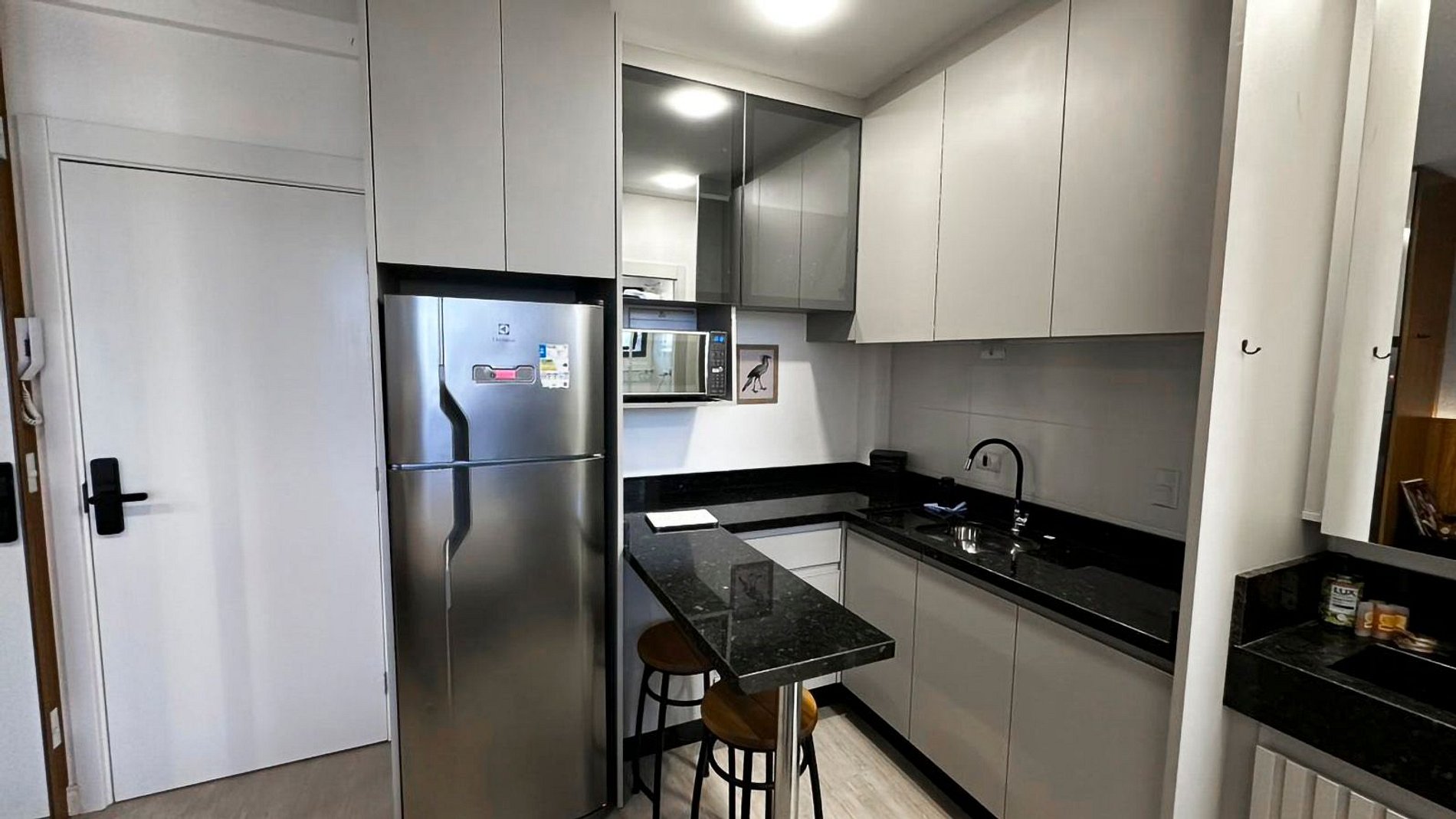 Os apartamentos possuem fechaduras eletrônicas, proporcionando check-in e check-out práticos, rápidos e seguros, sem a necessidade de chave física.