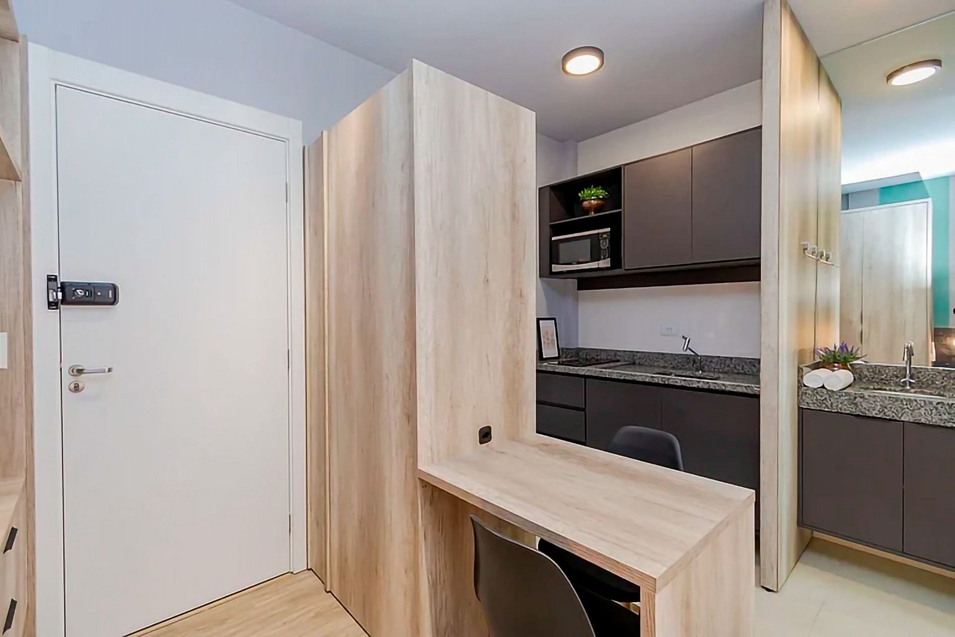 Os apartamentos possuem fechaduras eletrônicas, proporcionando check-in e check-out práticos, rápidos e seguros, sem a necessidade de chave física.