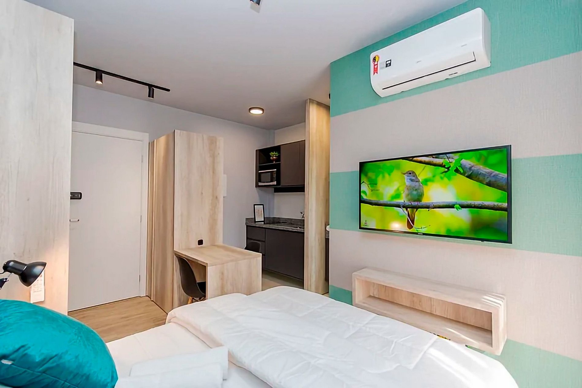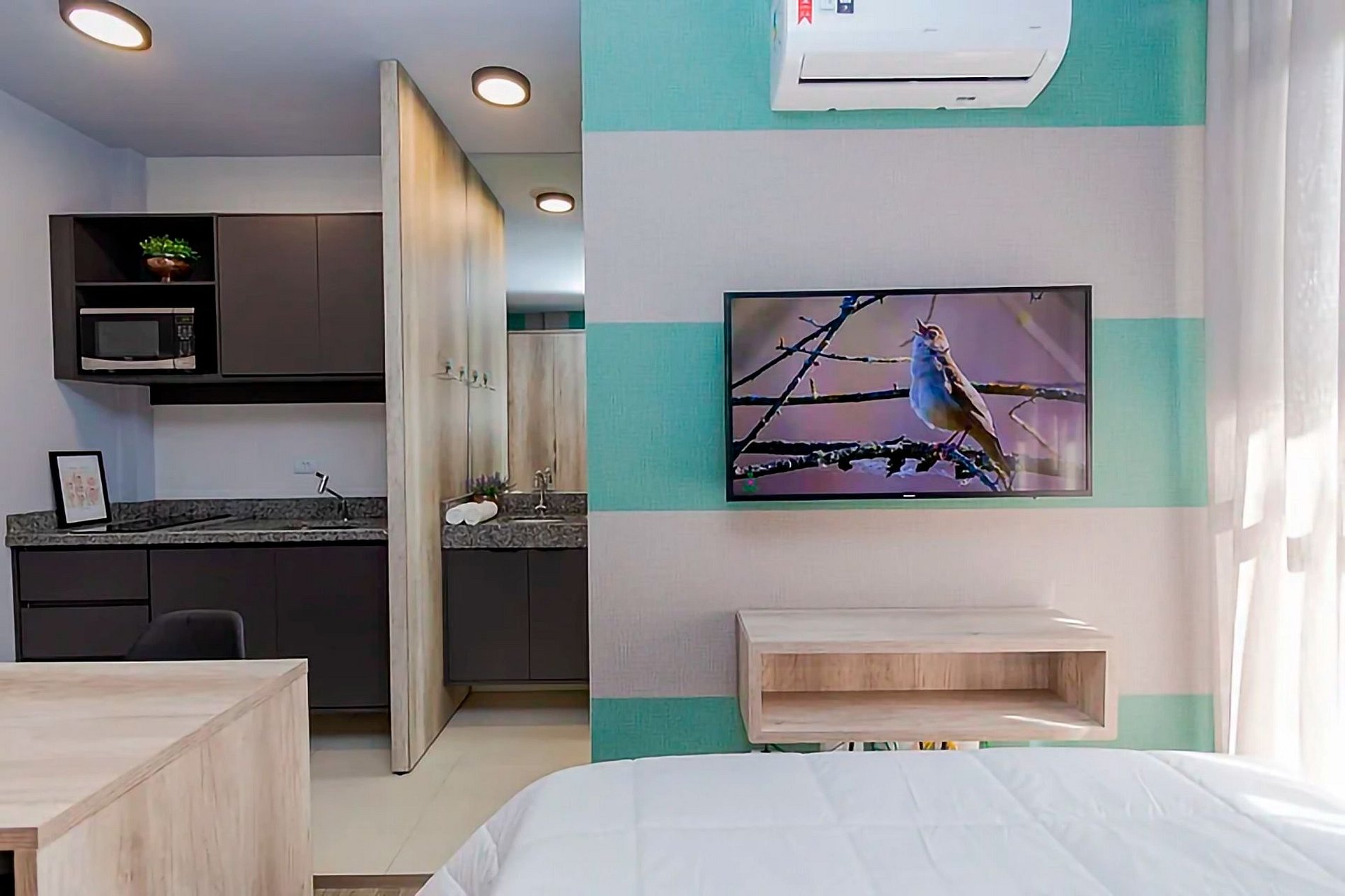 Hospede-se com conforto e praticidade neste studio novo, moderno e completo, localizado no sofisticado bairro Ecoville, próximo ao Shopping Barigui, Parque Barigui e Carrefour.
