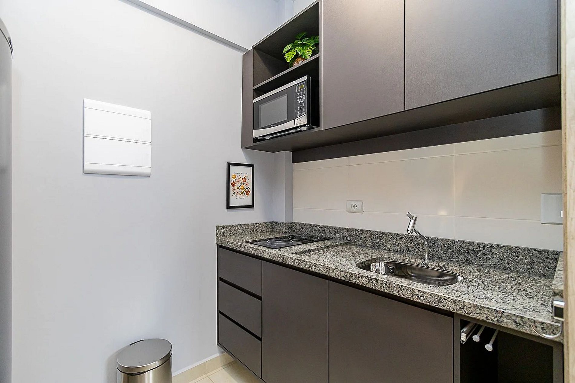 Hospede-se com conforto e praticidade neste studio novo, moderno e completo, localizado no sofisticado bairro Ecoville, próximo ao Shopping Barigui, Parque Barigui e Carrefour.