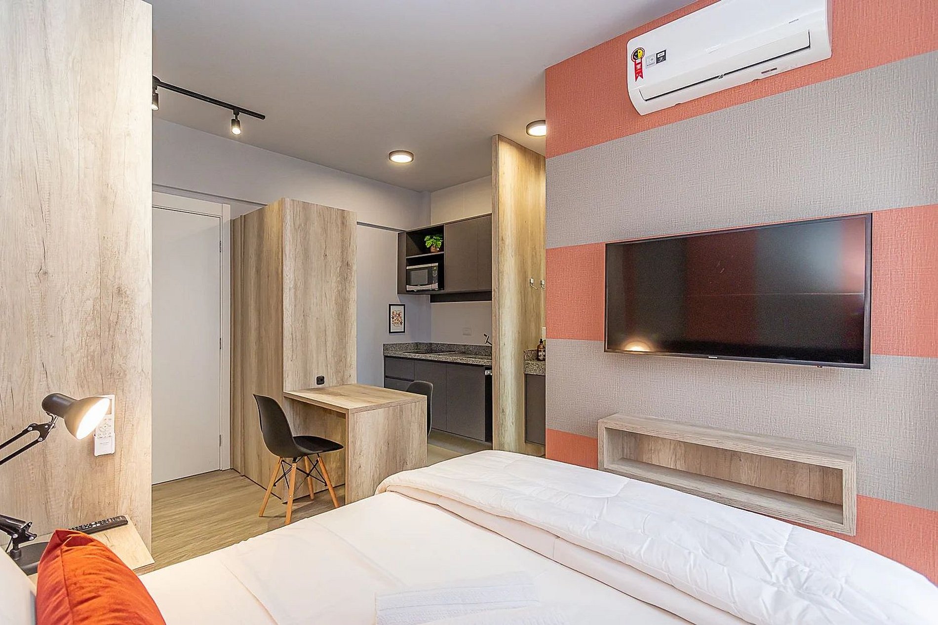 Hospede-se com conforto e praticidade neste studio novo, moderno e completo, localizado no sofisticado bairro Ecoville, próximo ao Shopping Barigui, Parque Barigui e Carrefour.